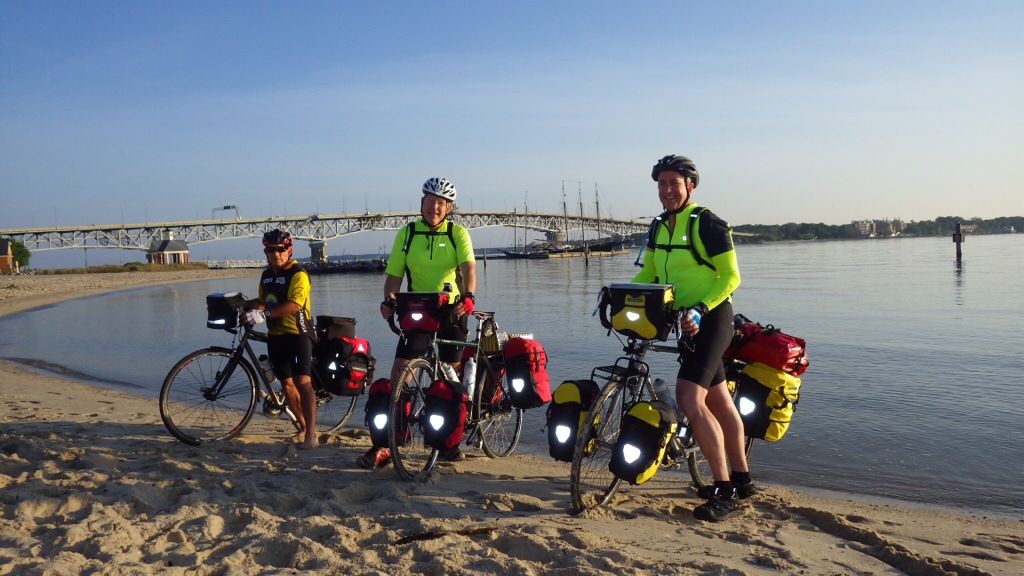 Our next adventure would us on and off of Rt 1. Up ahead, was Jerico Road, and several options for restocking the food/drink supply. There were flashing lights and bicyclists. We approached the intersection to find a large group of riders and a police escort. It was the 19th annual Bike for the Blue ride from Richmond to DC as a part of Police Week in Washington DC to honor police officers killed in the line of duty. There were about 200 riders getting ready to take off. We were greeted and invited to ride along. Several of the officers and organizers asked what we were doing and invited us to ride with them as they headed north on Rt 1. We quickly accepted and joined in. Could have used a water and fluid upgrade, but they were rolling and when do you get the chance to ride with such an honorable group. We fell into the mass of cyclists. As we peddled up the road, many of the cyclists said hi to us and asked where we were going. To most, the reaction was – “you are crazy.” It was a hot ride, a faster pace than we anticipated, but we kept up to the first stop. As we made it to the rest area, we were invited to put our bags in someone’s truck and helped to fix a bike and injured rider. Out came the tools and bandages to make some necessary repairs. Water and gator aide passed out and we even got t-shirts from the group. I can’t make this stuff up. Where else can you get a full police escort on your cross country trip? For about 25 miles, we got to ride with some incredible people and experience the thrill of riding in an escorted group. None of the motorcycle officers took us up on the offer to ride along for the rest of our journey. Now that would be fun.