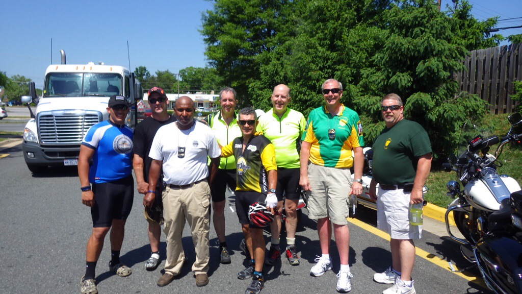 Now, that our bikes were much lighter, we kept up (mostly) with the group to the next stop – Wawa in Fredericksburg. Did I telly you that it was hot today? There were riders resting in the shade and many headed into the cool store to fuel up and cool down. This was our time to break away from the group. We said good byes to many of our new friends and got some great pictures. What a great cause, may have to join them next year – May 13 is the day to ride.