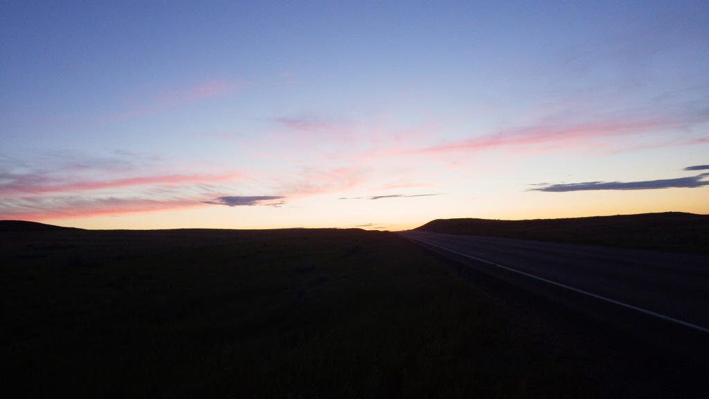 Another early morning start to beat the winds. This is 445 AM. Goal today is to make it to at least Winnett.