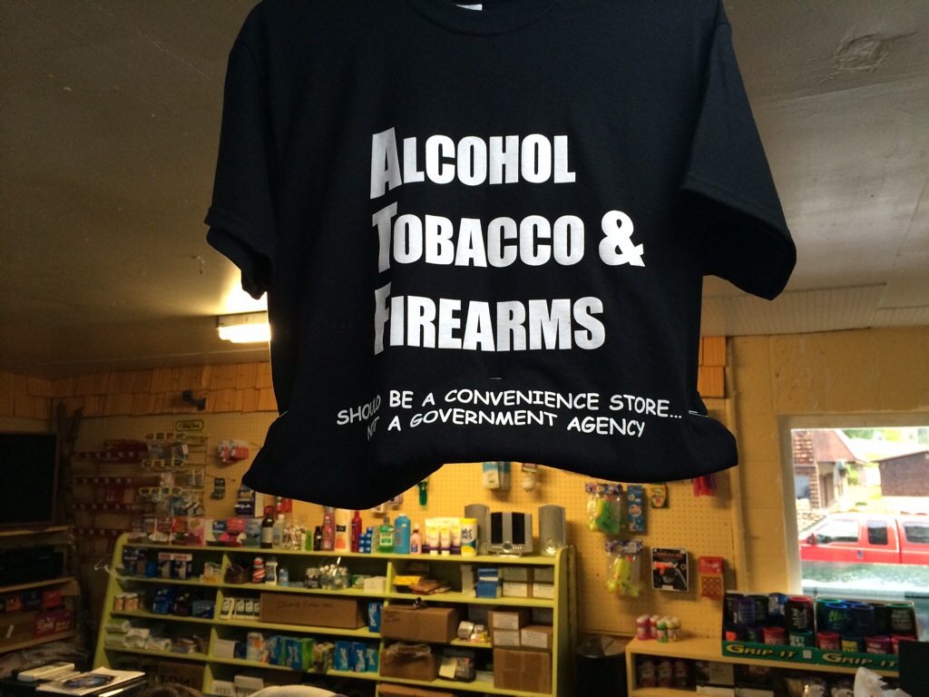 First real stop was the gas station (with no gas today; much to the displeasure of many motorcyclists). Needed a break after 30 something miles, so had a conversation with the store owner. The place serves as a convenience store, tackle shop, and checkin station for hunters. While there, i spied this t-shirt and had to memorialize it for my rocketry friends:
